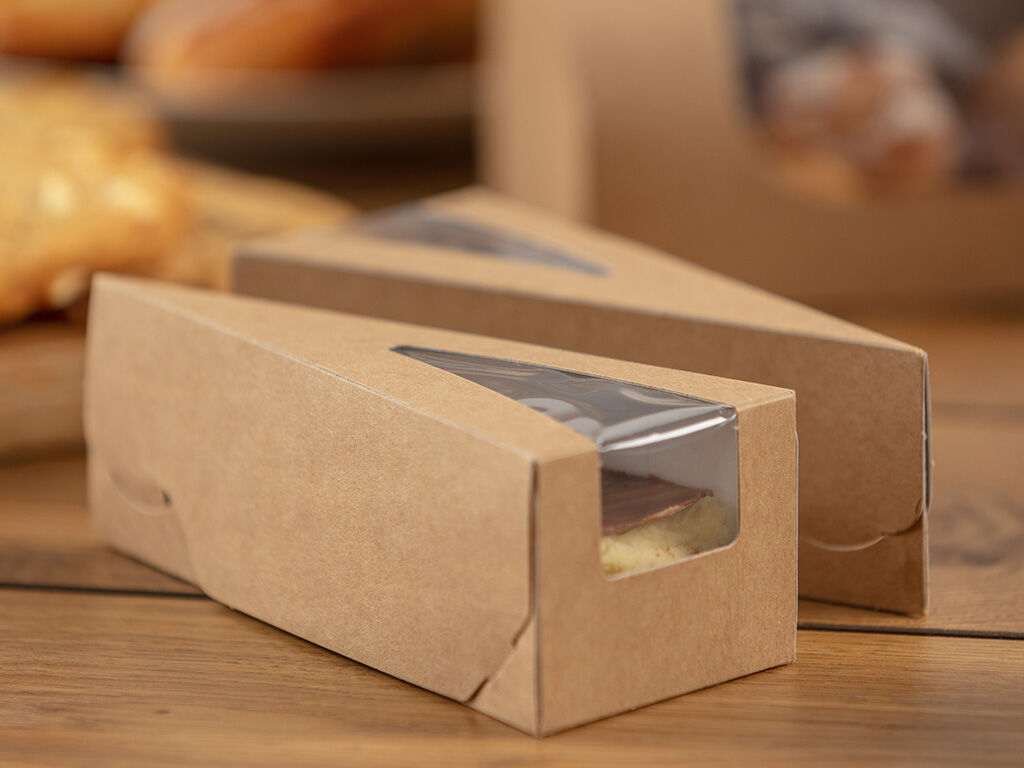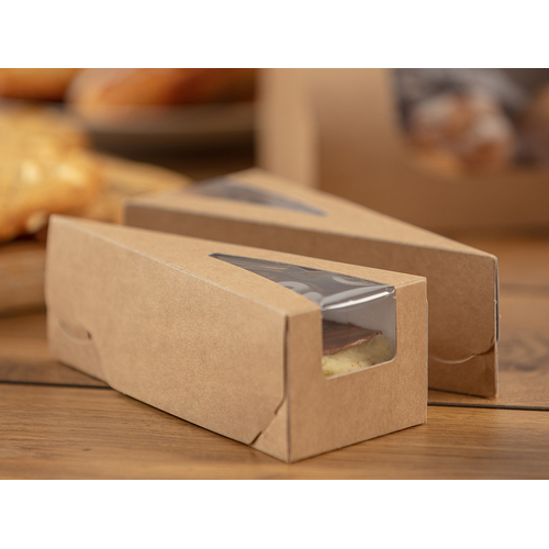 This large 'Piece of Cake' wedge in kraft is ideal for individually packaging a single, large piece of cake.