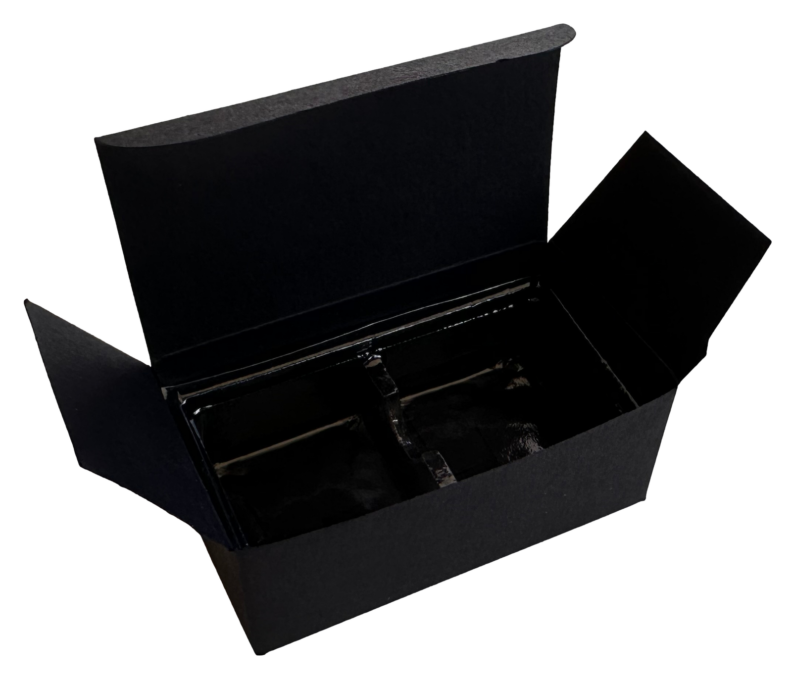• A stylish little Matte Black box with tray to suit 2 chocolates