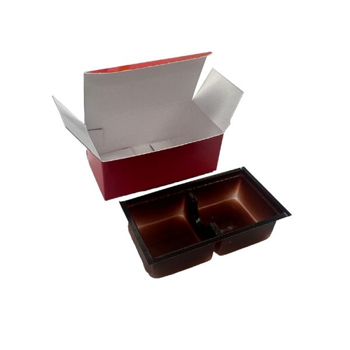 - A stylish box one piece Red box and a tray to suit 2 chocolates