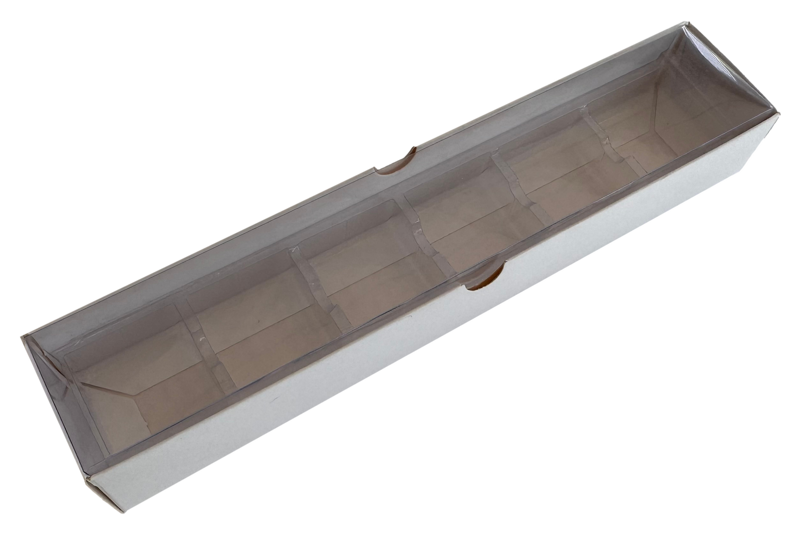 - A stylish box - White base and clear lid with tray to suit 6 chocolates