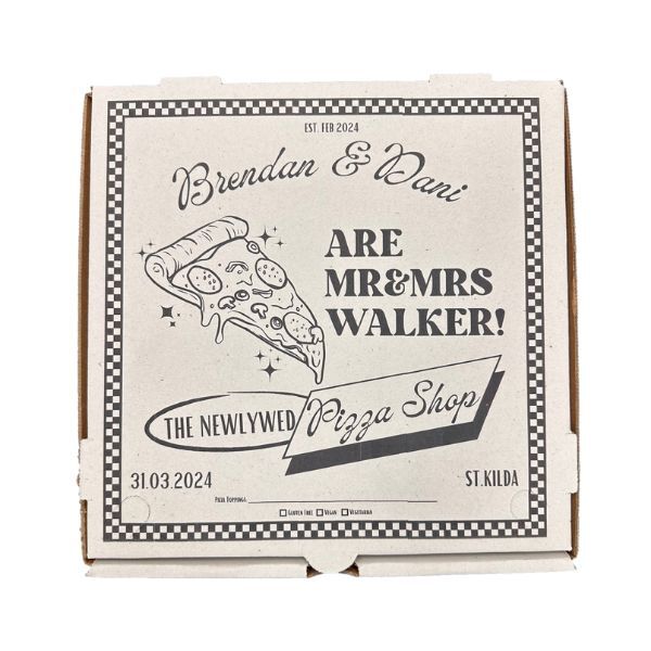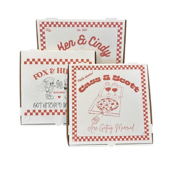 Brand our standard White pizza box with your logo/artwork - 1 Print Kind. Made from corrugated cardboard. Pizza Box is 40mm Deep.