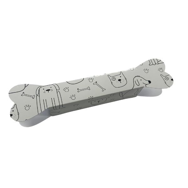 - A rectangle dog bone box with tabbed ends - includes bags to seal your dog treats in (bag then goes inside the box).