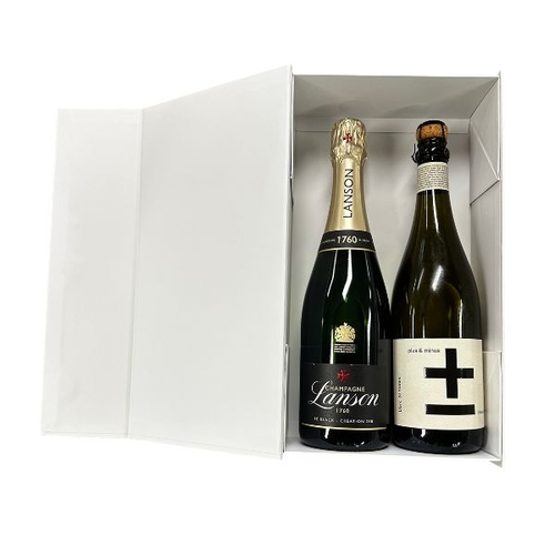 Magnetic Collapsible Box Dbl Wine SF Matte White - Custom Printed Lid