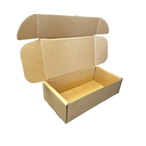 A sturdy heavy duty mailer box made from corrugated Kraft cardboard. Product is supplied flat.
