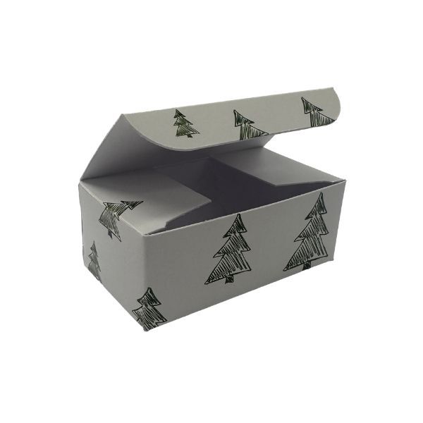 Choc Box 6 White Base, Christmas 'Green Trees' Lid and Tray