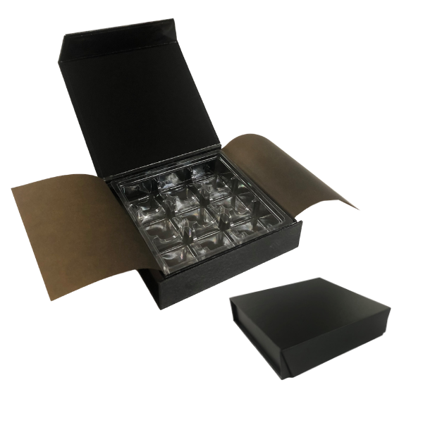 Includes Clear 9 Cavity formed tray + Brown Chocolate protection paper